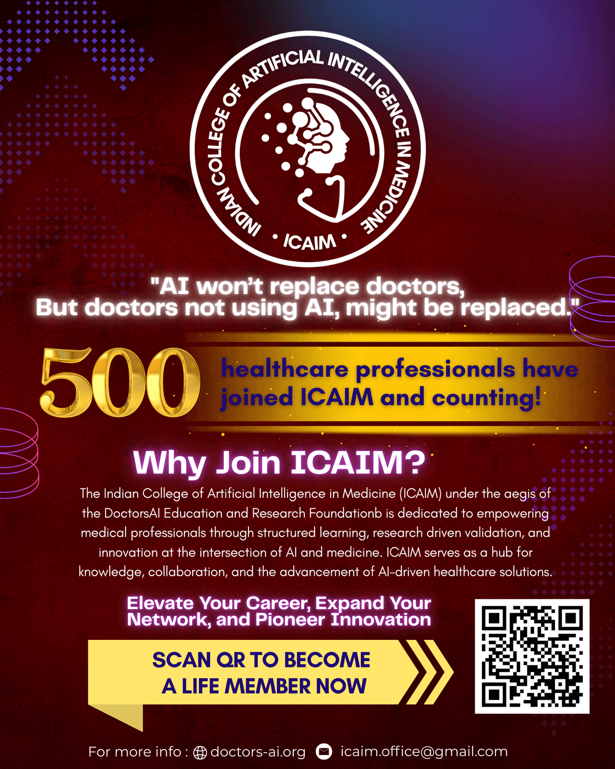 The Indian College of Artificial Intelligence in Medicine (ICAIM) is under the aegis of DoctorsAI Education and Research Foundation